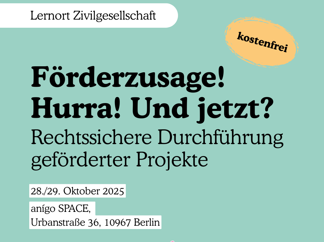 On 28 and 29 October 2025, the in-person workshop entitled "Grant Approved! Hooray! Now what?" will take place in Berlin. In this two-day workshop, you will learn how to implement funded projects and manage grants effectively.[organized by Landesnetzwerk Bürgerengagement Berlin e.V.] All information about the workshop and registration can be found here.
